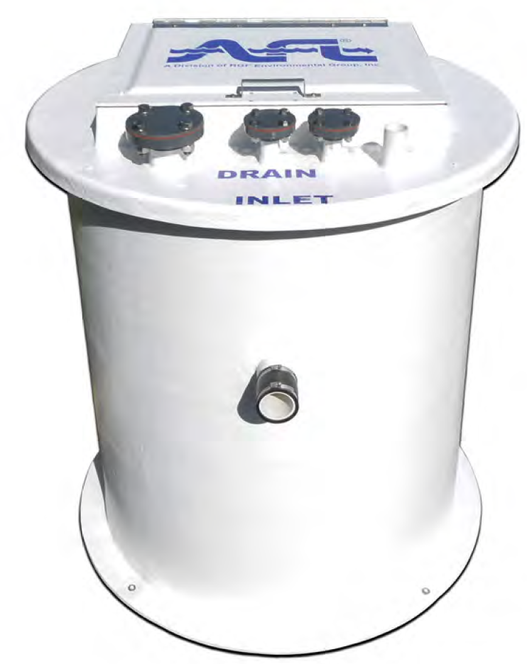 - EGS Series – The EGS separates heavy solids and oil from industrial wastewater and storm water using gravity separation. Heavy settleable solids drop out of oily wastewater in the inlet chamber. In the separating chamber is collected by a rotary pipe skimmer for collection and disposal. A sheen baffle retains residual floating oil as the treated effluent discharges through the outlet.